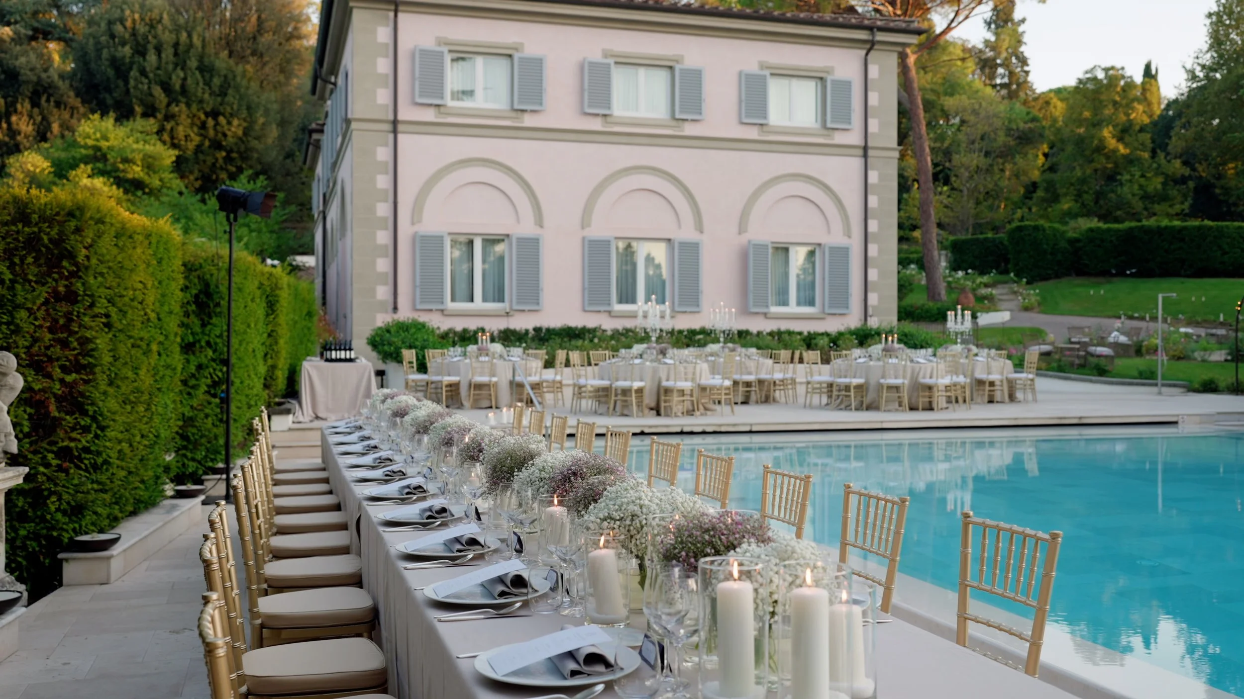 Situated just outside Florence’s historic center, the villa is nestled in lush gardens with panoramic views of the city and surrounding Tuscan hills, providing an idyllic and scenic backdrop for your ceremony and reception.Exclusive and Private: